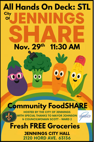 We’re Coming Back to JENNINGS! We are SO excited for our third FREE Groceries SHARE with the amazing City of Jennings, MO! 🙌🍎