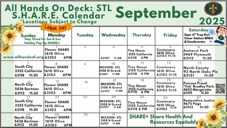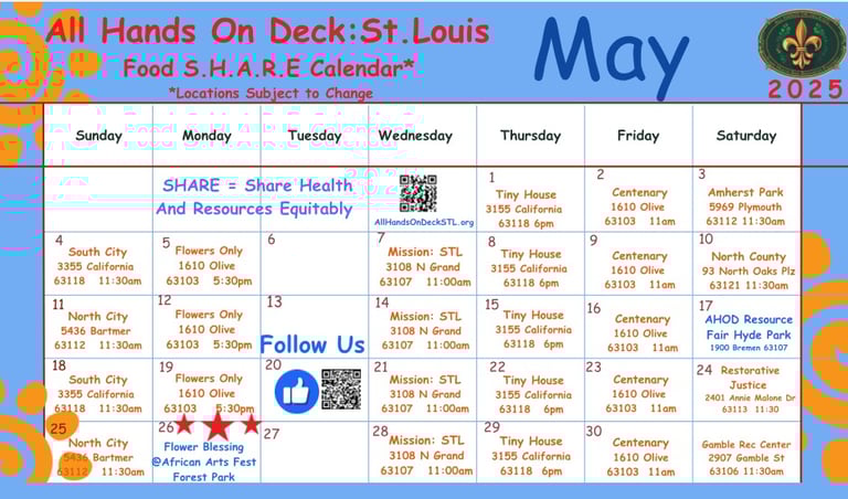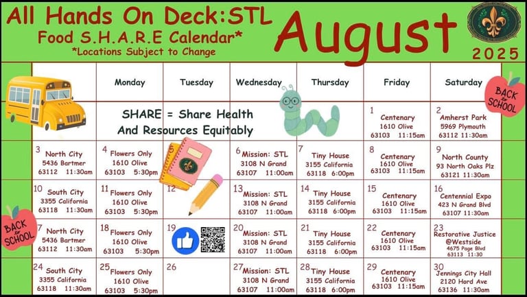 Our Mission: All Hands On Deck: St. Louis is dedicated to sharing health and resources equitably, ensuring all Community members have access to nutritious food and essential resources - regardless of socioeconomic status.